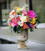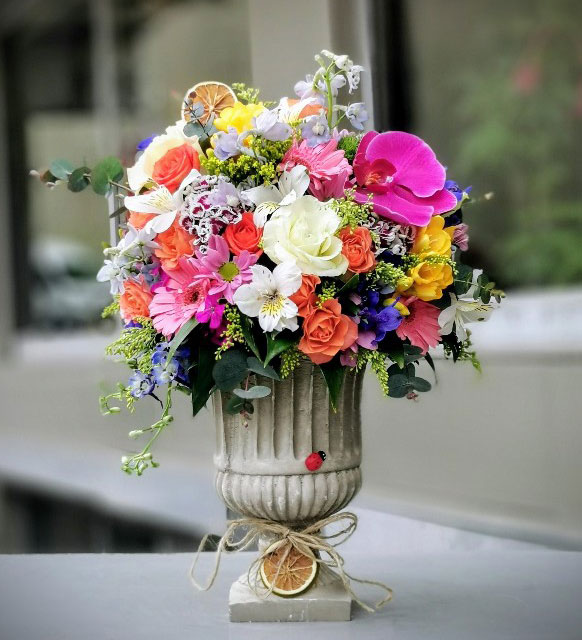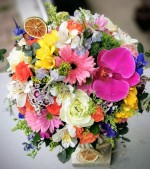 10 turuncu çardak gül 5 lisyantüs, 5 gerbera, dephilium, orkide ve mevsim çiçekleri